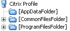 noteThese predefined folders are always added to the root of the Citrix Profile tree, no matter what file or folder you had selected when you selected it from the Predefined Folders list.