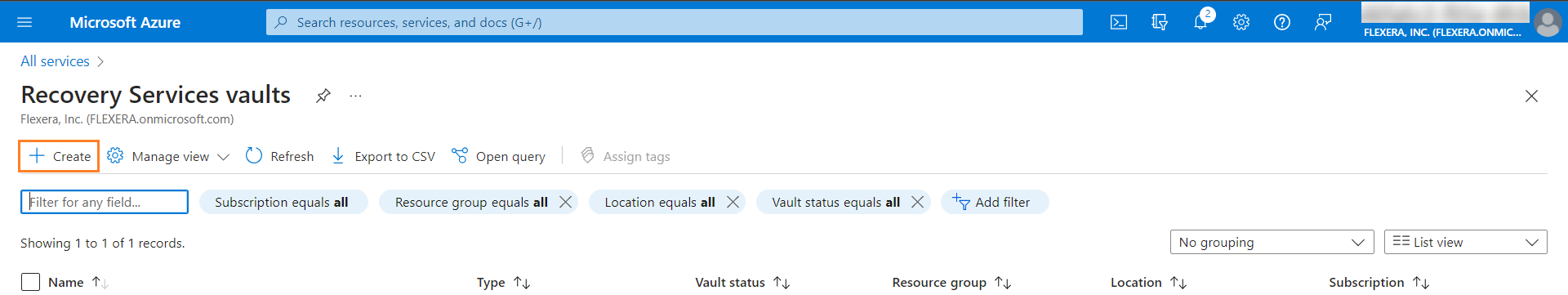 6. Upon successful action, a newly created recovery services vault will be listed in the Recovery Services vault page.
