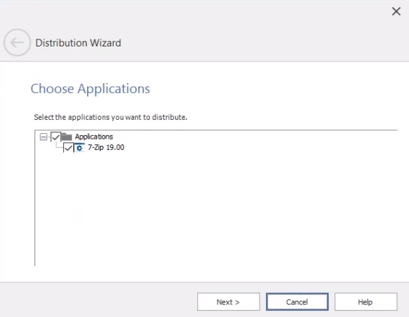 2. The Choose Applications panel under Distribution Wizard opens. Select the applications, and then click Next. ![](/images/Distribution Wizard1.PNG)