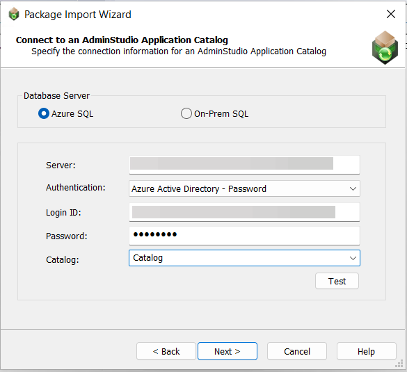 Select AdminStudio Application Catalog and click Next. The Connect to an AdminStudio Application Catalog panel opens.
